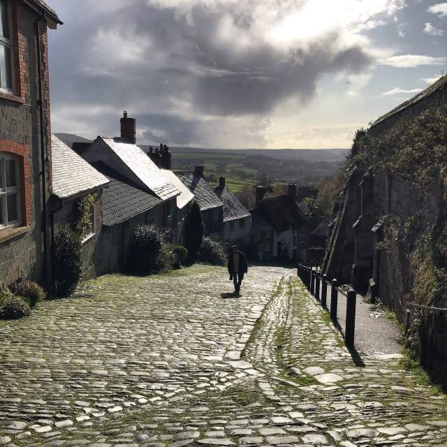 Here I am climbing Gold Hill in Shaftsbury. I love Wessex. I enjoy being outdoors in old places & drifting through histories.