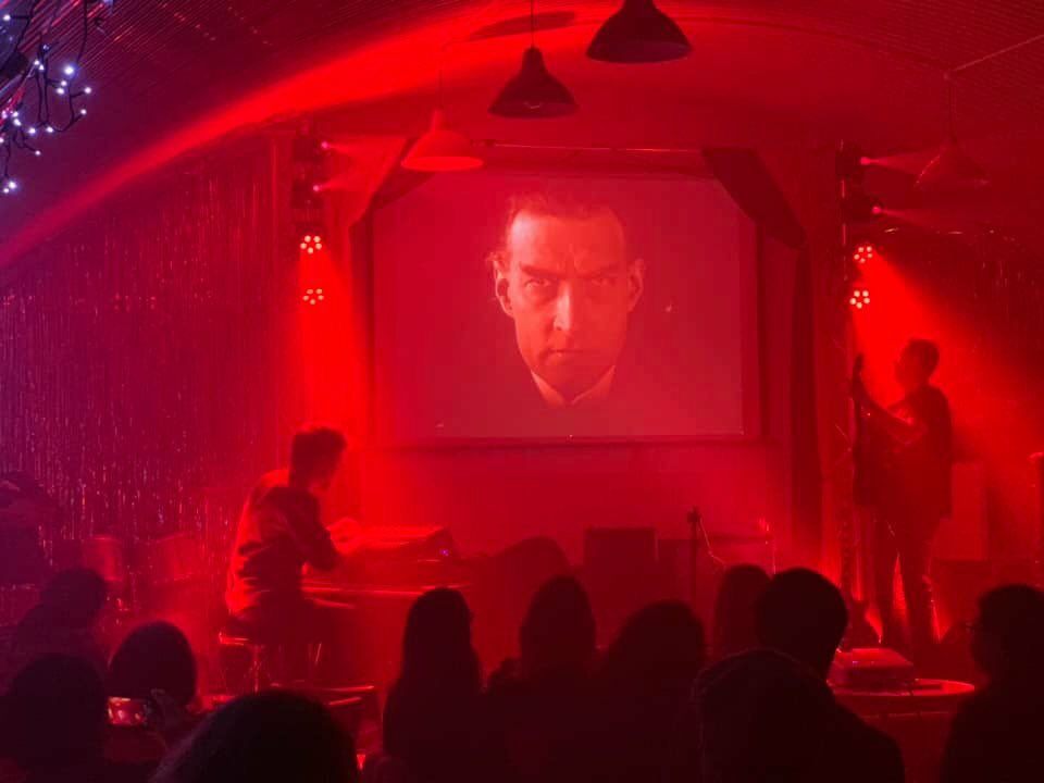 Here I am with my friends Olly & Rocco performing an improvised soundtrack to the 1928 Swedish classic silent movie Haxan. That’s a typical Halloween evening for me. The picture was taken by Claire Donovan & captures the vibe perfectly. I read the Mackay translation of Malleus Maleficum several years back & this film is in keeping with the source persecution. I am currently arranging to perform more live soundtracks of silent films. Murnau, Lester & Bunuel are in the crosshairs with more pending.