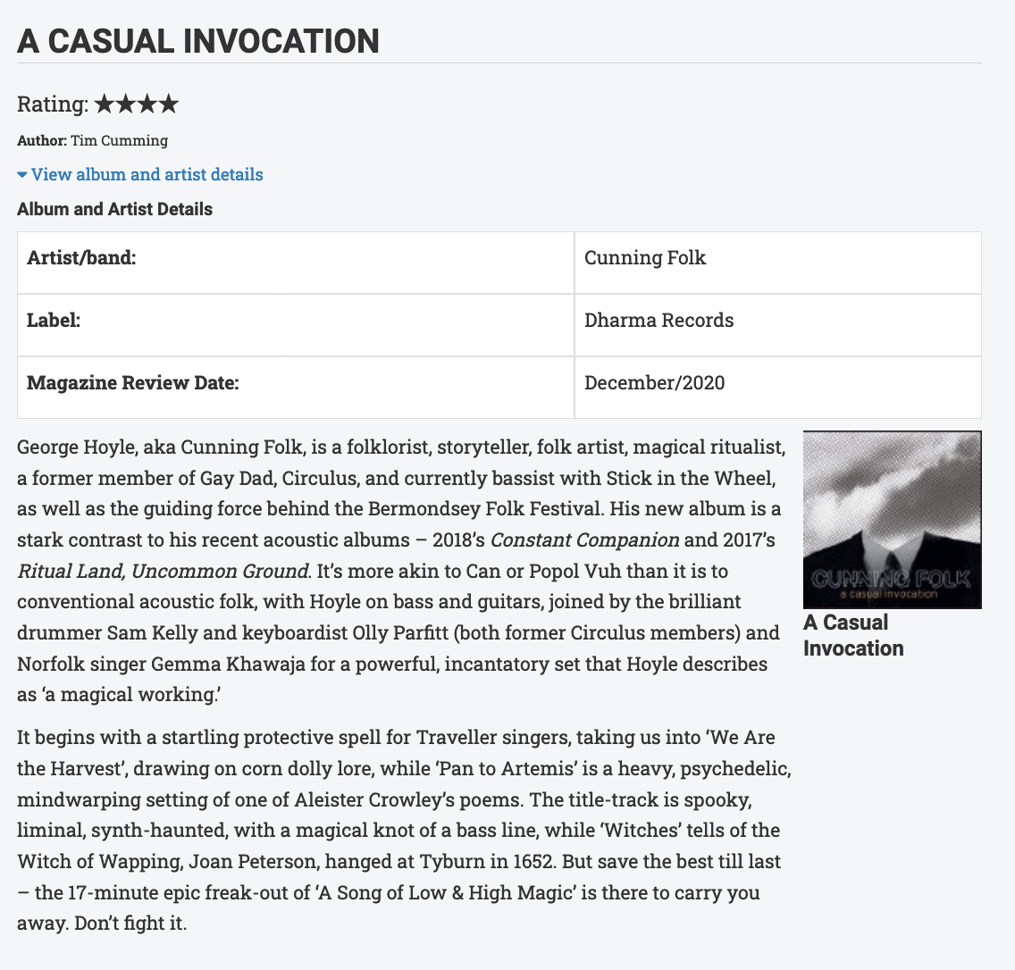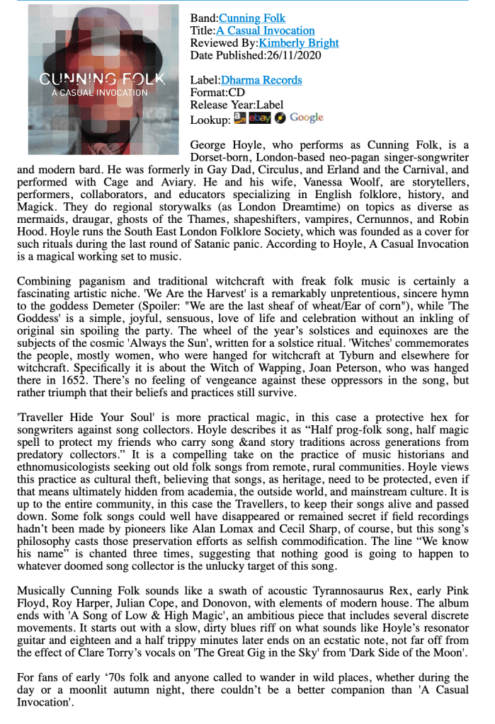 Press Songlines Review December 2020 Cunning Folk in the Songlines Essential 10: 2020 Folk Albums A 5 star review from Rock & Reel magazine Penny Black Magazine Nov 2020 Share this: Click to share on X (Opens in new window) X Click to share on Facebook (Opens in new window) Facebook Like Loading...