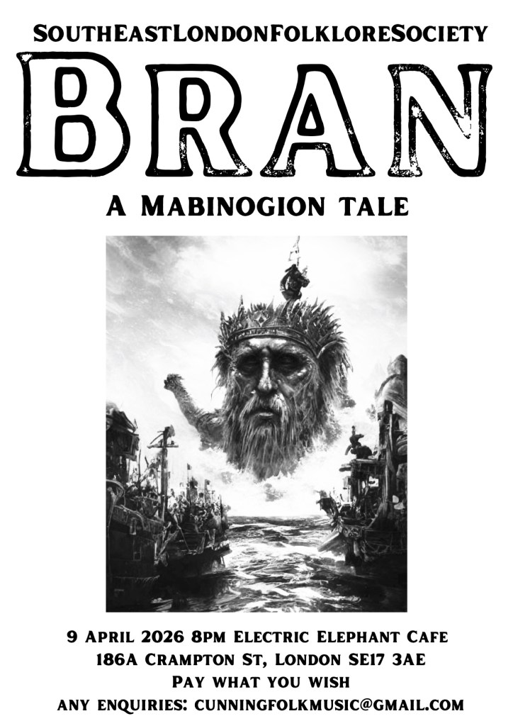 South East London Folklore Society meets on the second Thursday of the month at 8pm upstairs at The Electric Elephant Cafe 186A Crampton St, London SE17 3AE. The nearest underground stations are Kennington & Elephant & Castle.